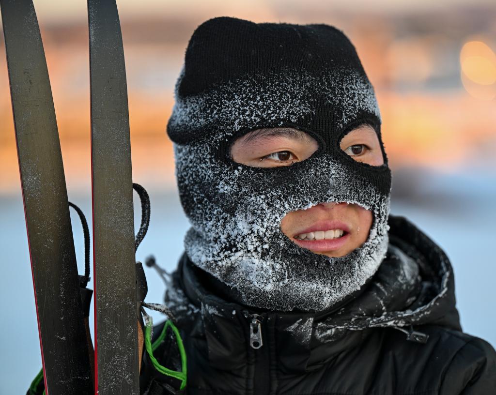 1月14日,在根河市城郊,结束训练后的队员宗美玲面部结满冰霜。新华社记者 徐嘉懿 摄