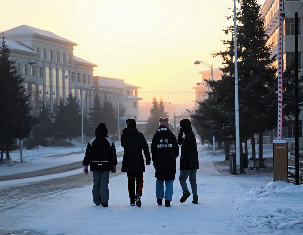 1月14日,在根河市,队员们前往食堂吃早餐。新华社记者 徐嘉懿 摄
