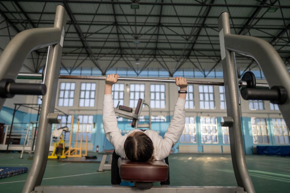 1月14日,在根河市业余体校,队员娜木娜在进行体能训练。新华社记者 连振 摄