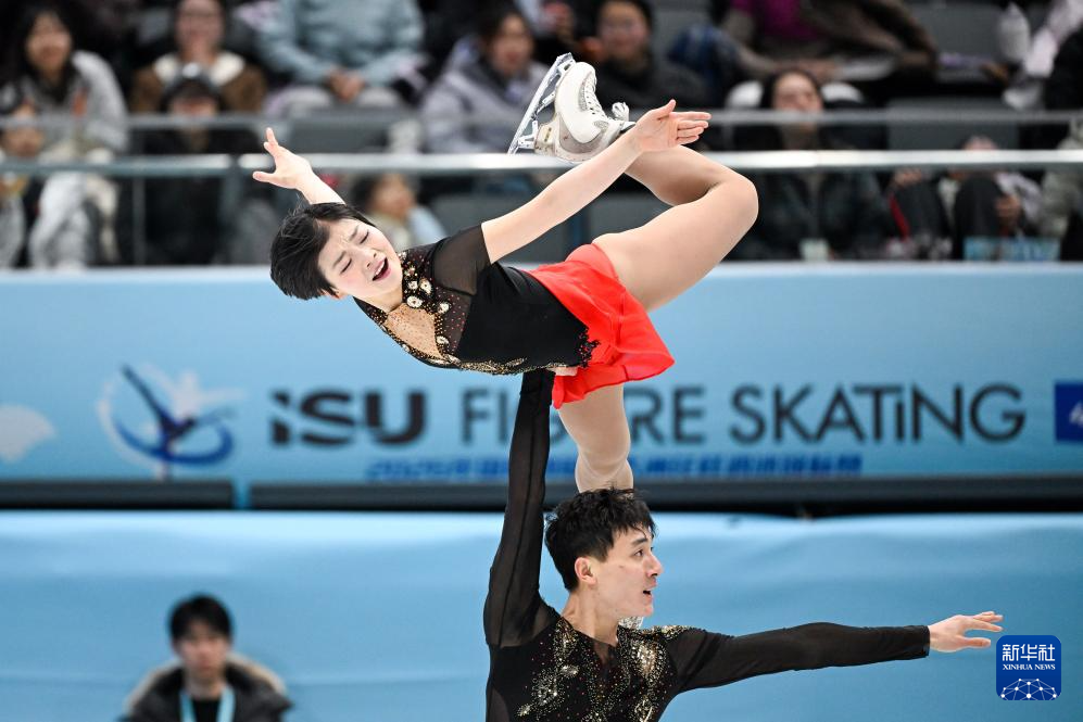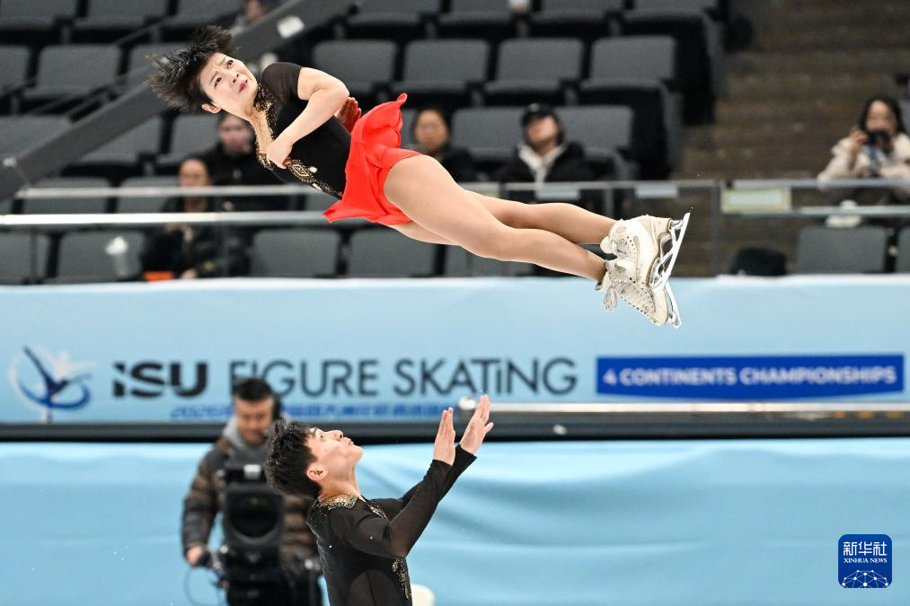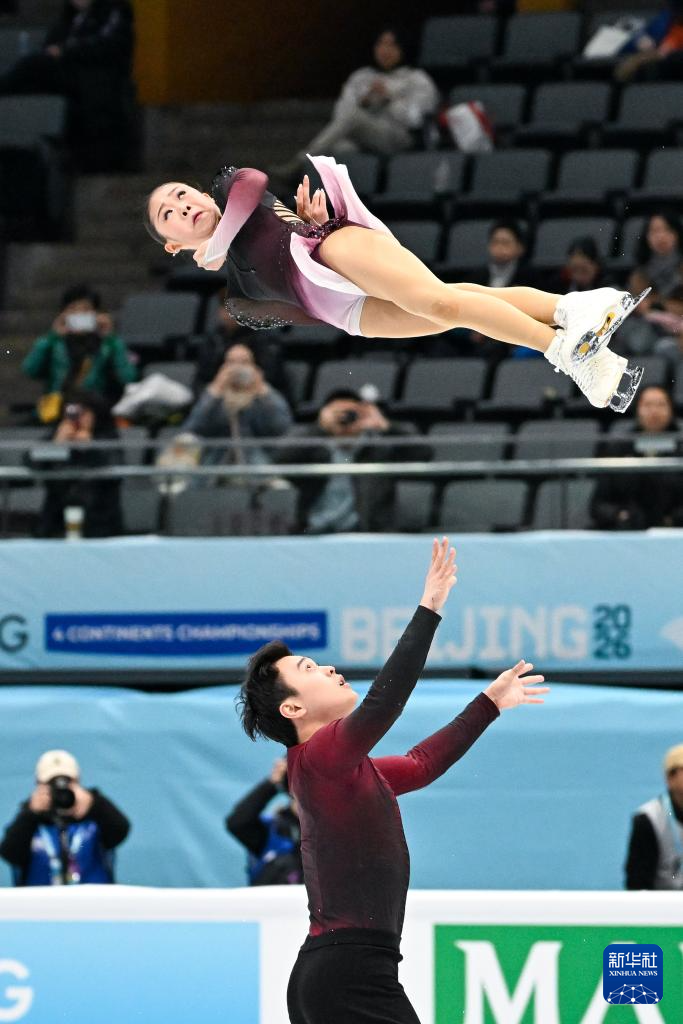 当日,2026年国际滑联四大洲花样滑冰锦标赛双人滑短节目比赛在国家体育馆举行。