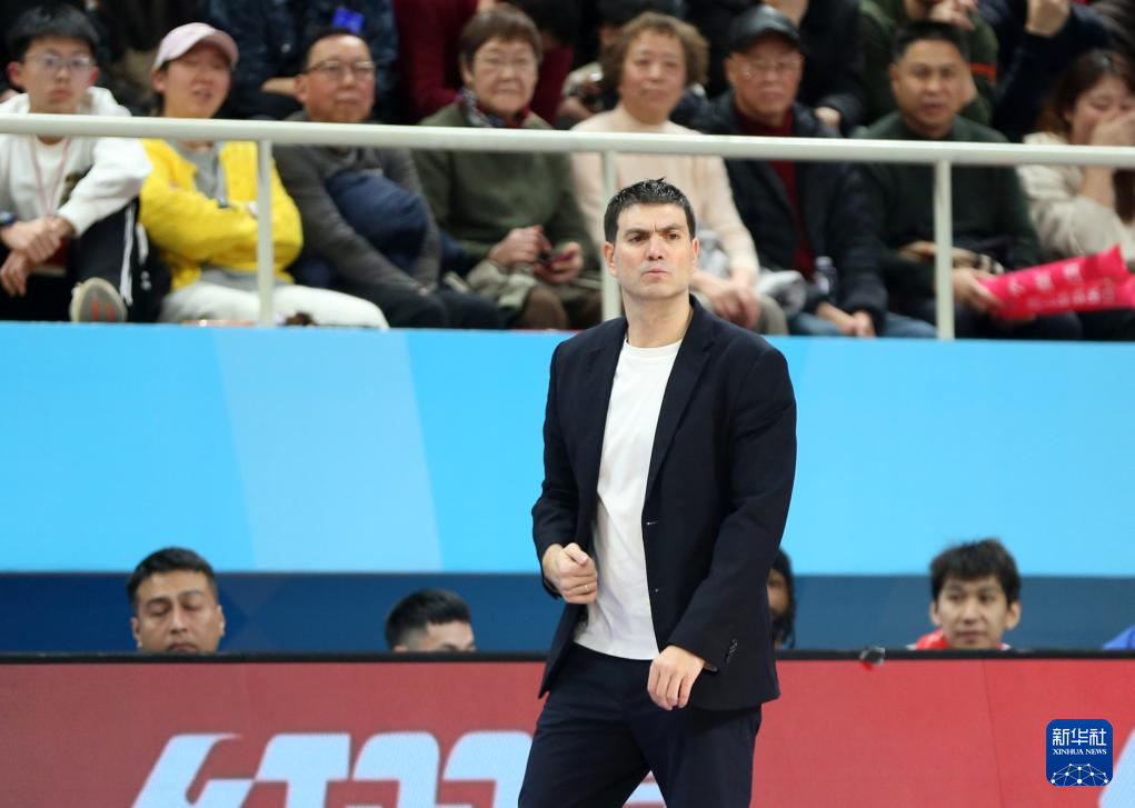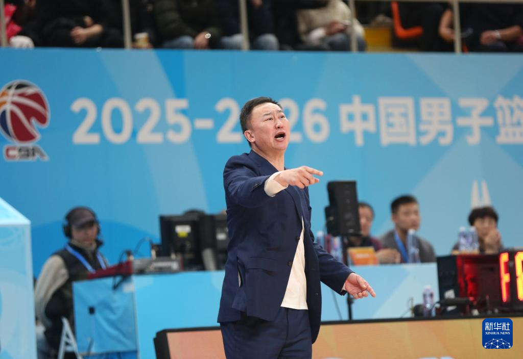 1月23日,青岛崂山啤酒队主教练刘维伟在场边指挥。