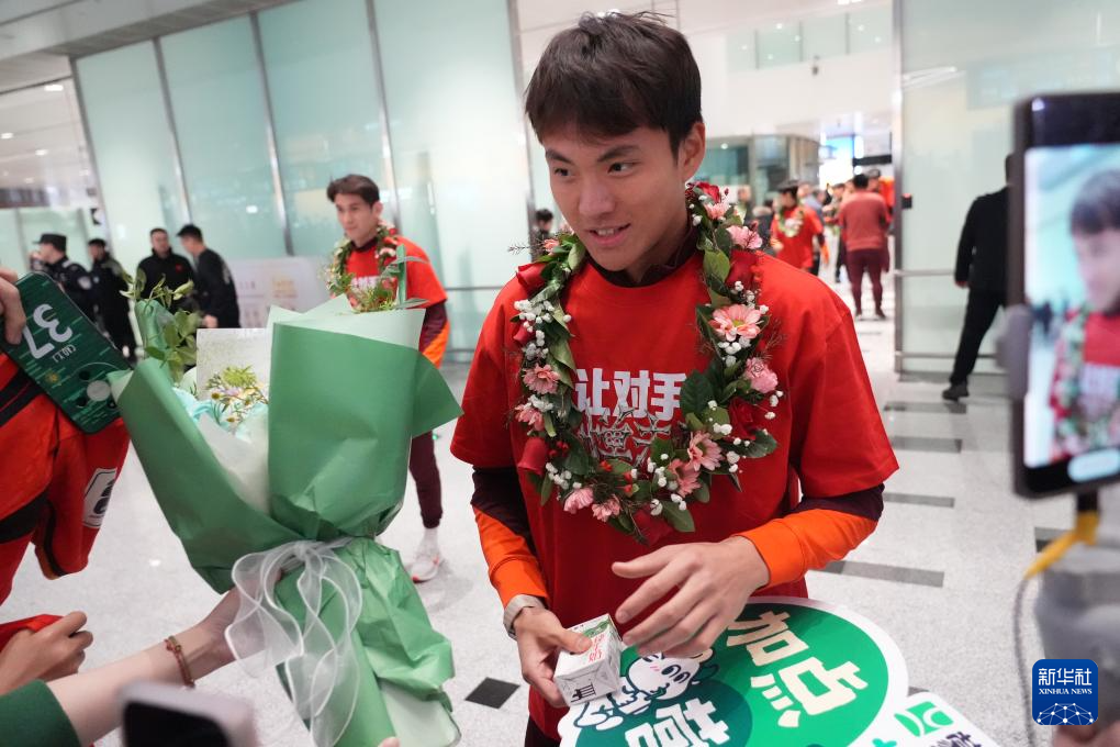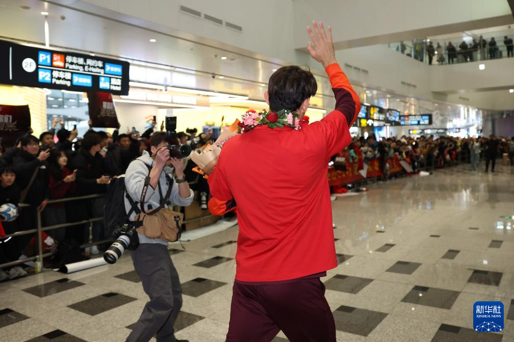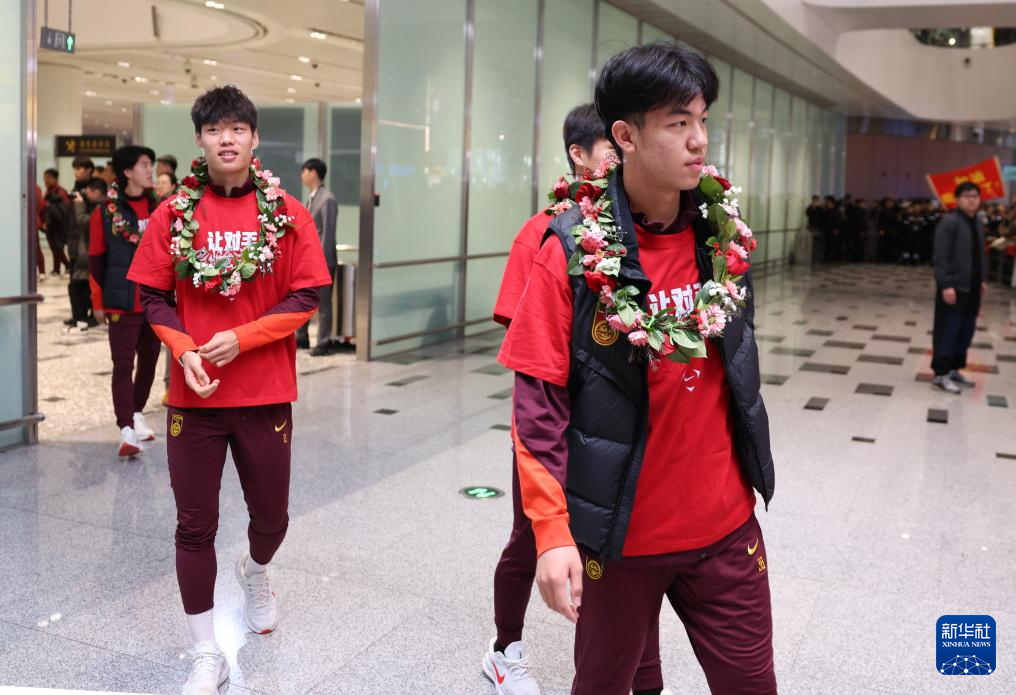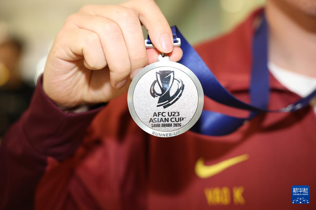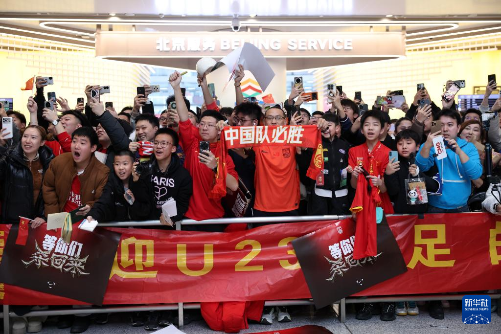 1月26日,在沙特阿拉伯夺得U23男足亚洲杯亚军的中国队抵达北京大兴国际机场。