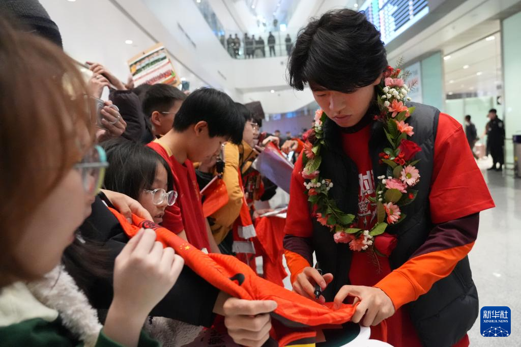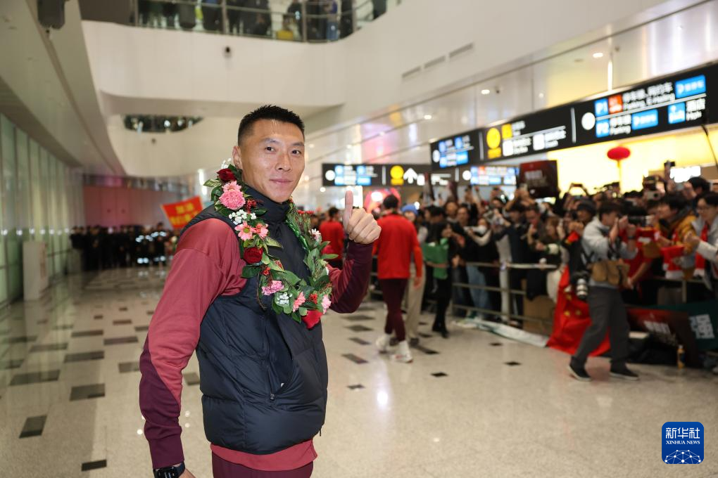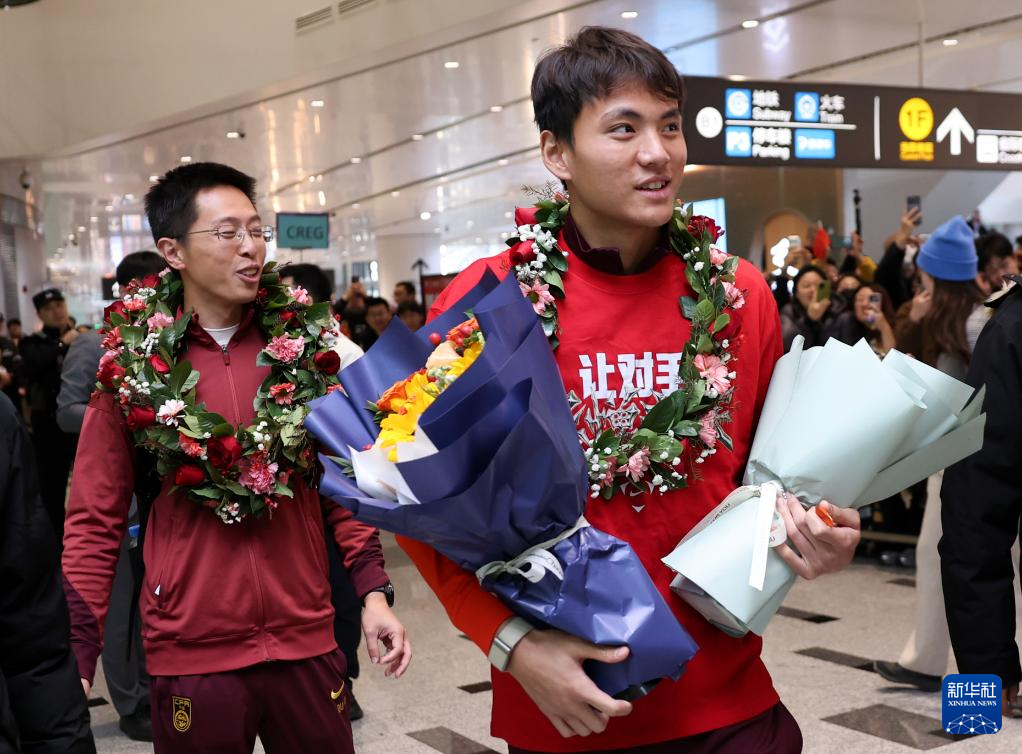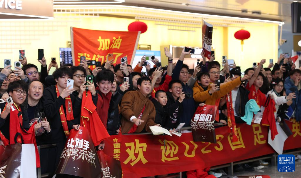 1月26日,在沙特阿拉伯夺得U23男足亚洲杯亚军的中国队抵达北京大兴国际机场。