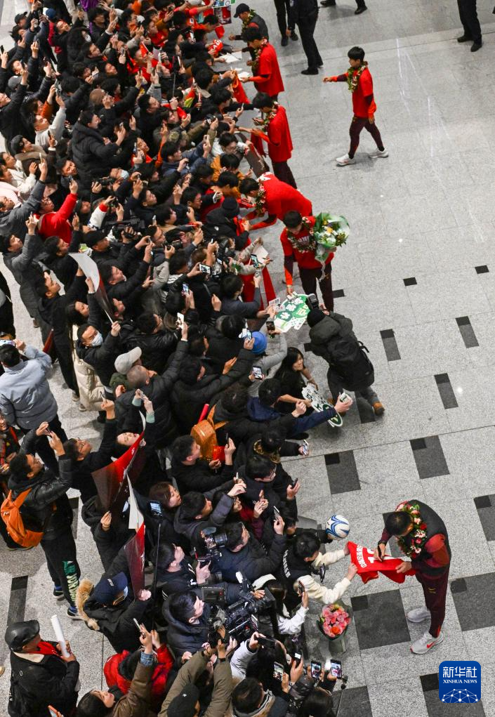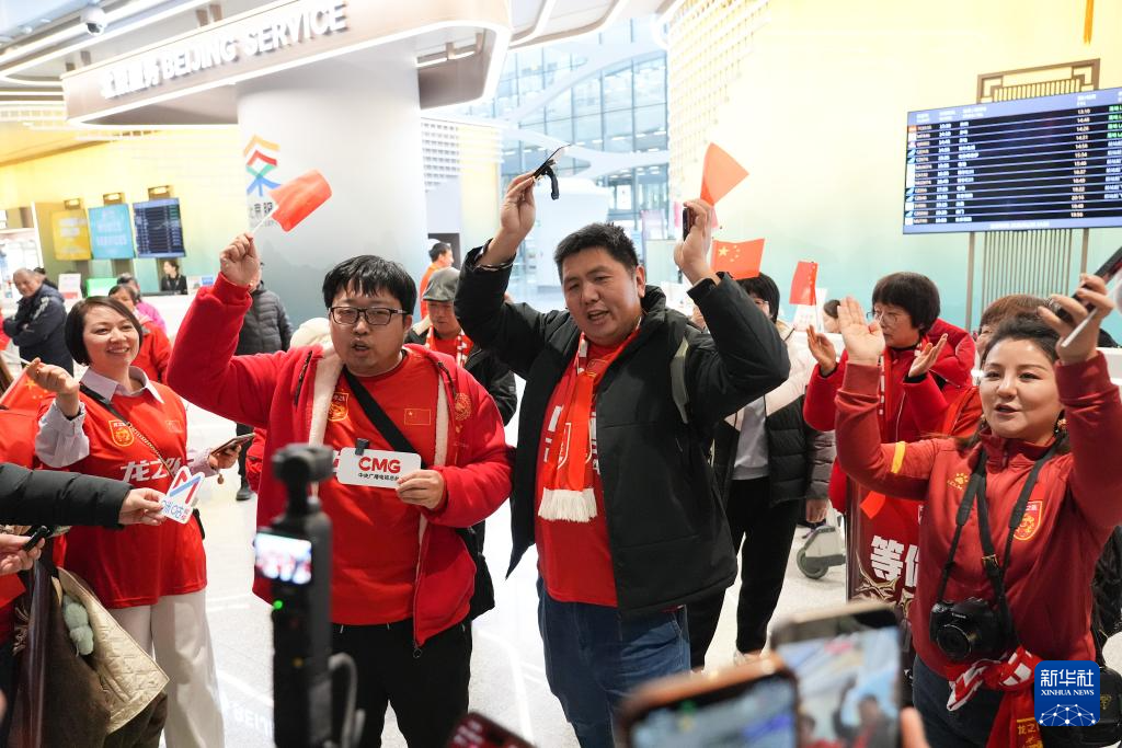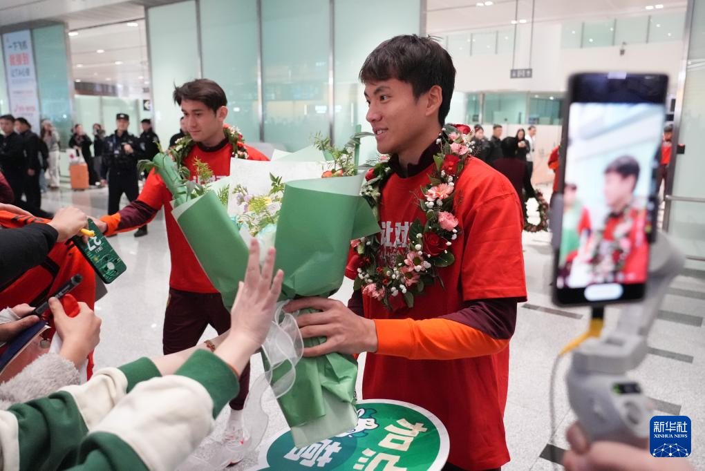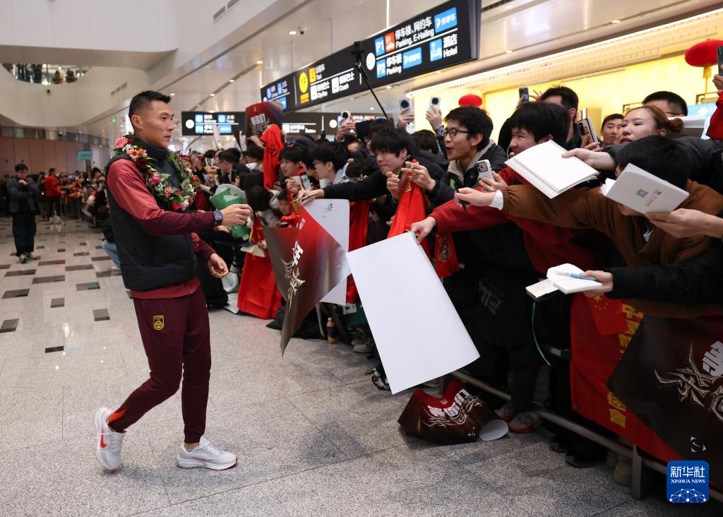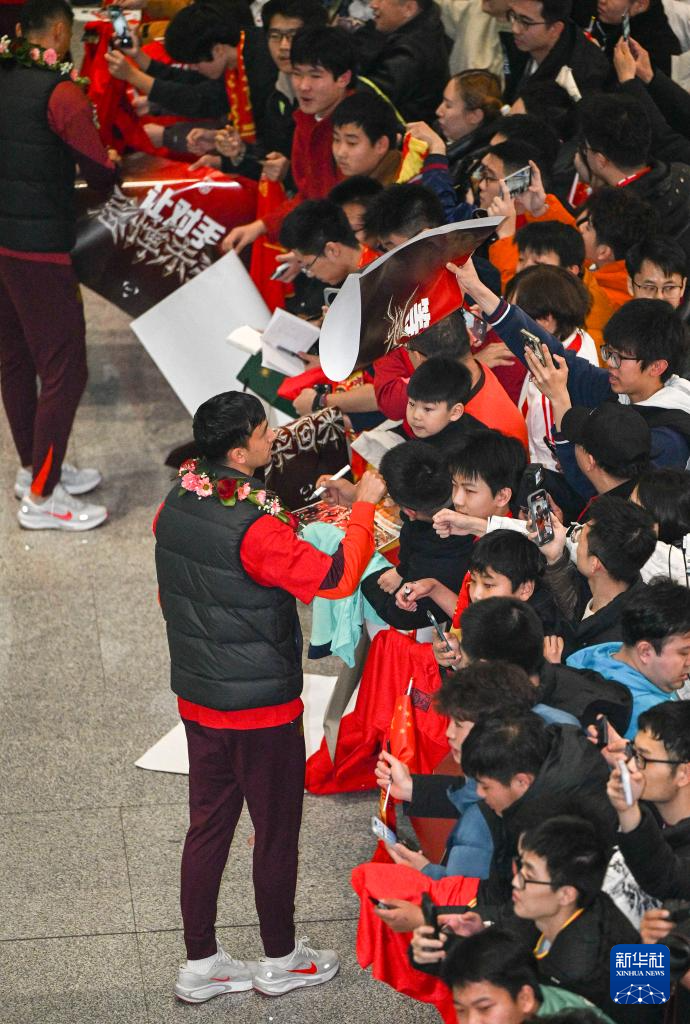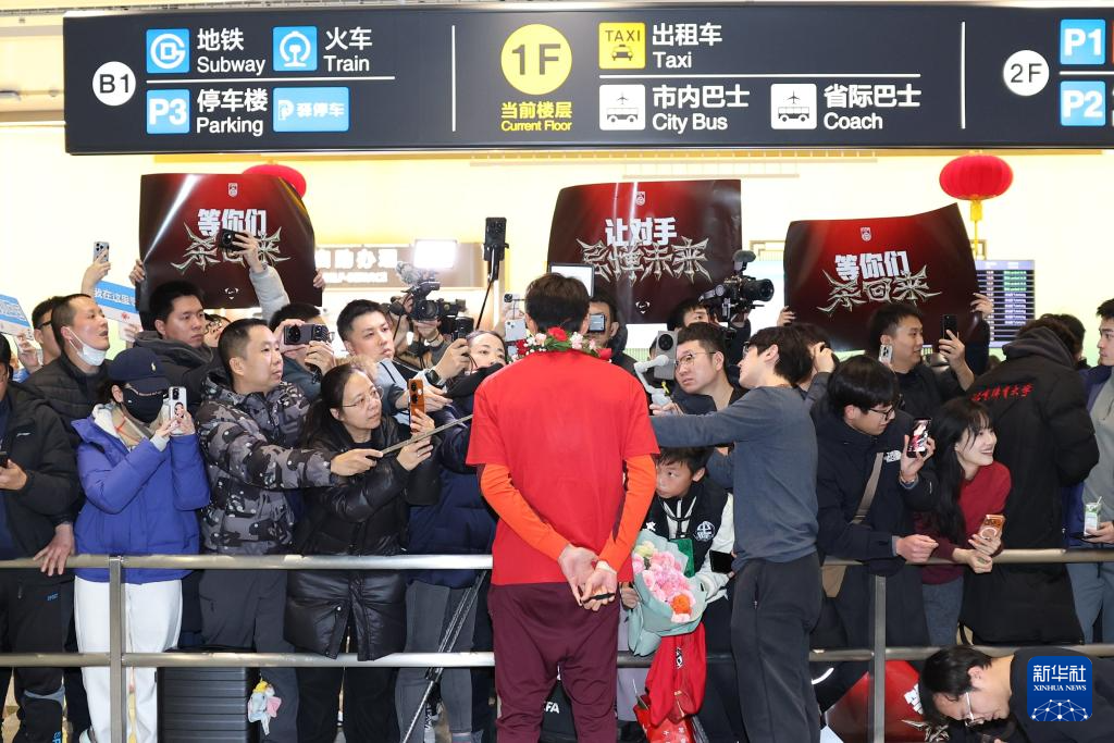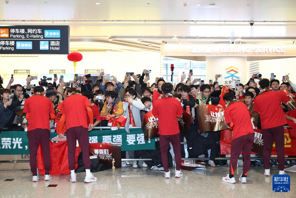 1月26日,球迷在机场欢迎中国队球员抵京。