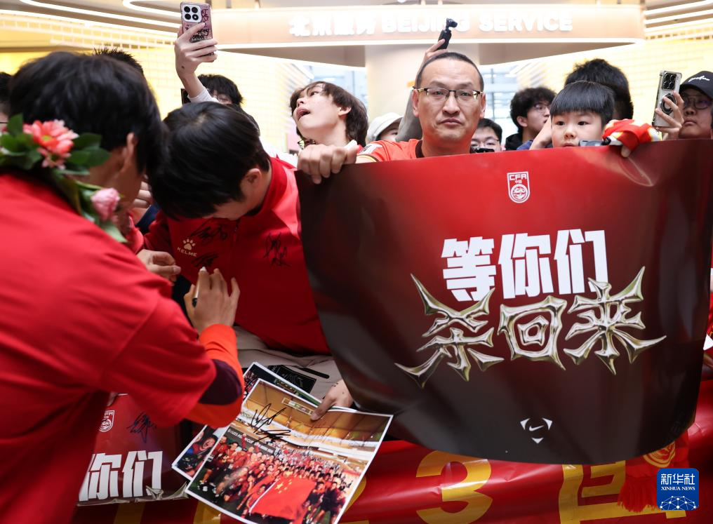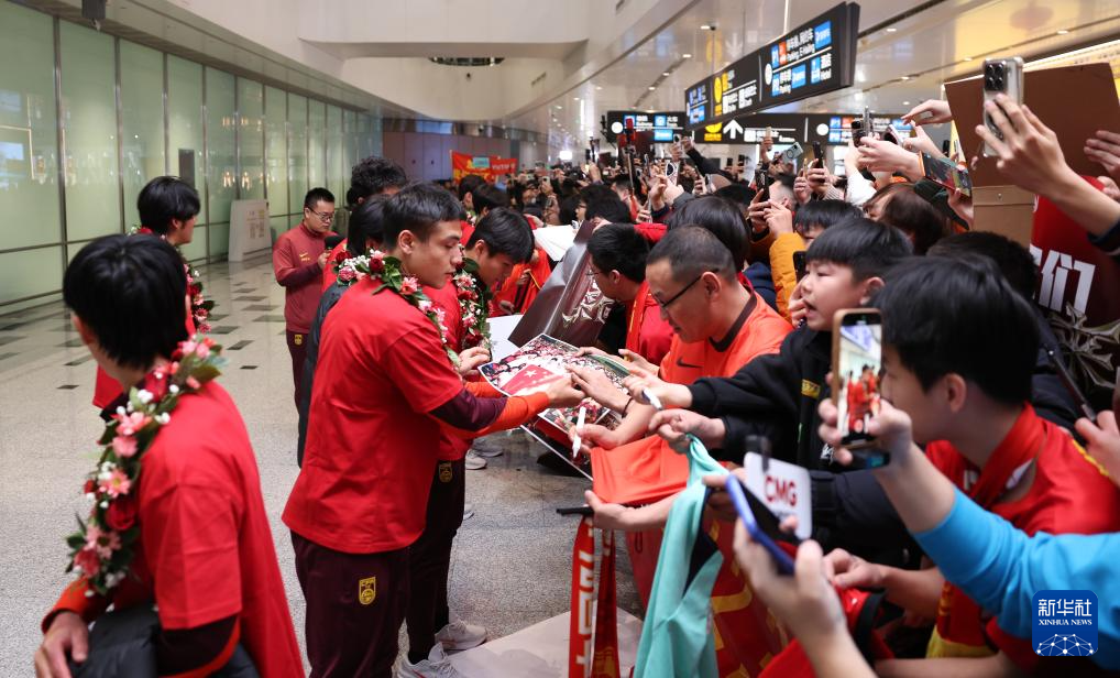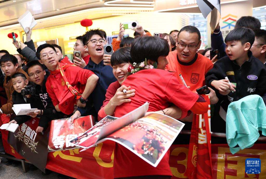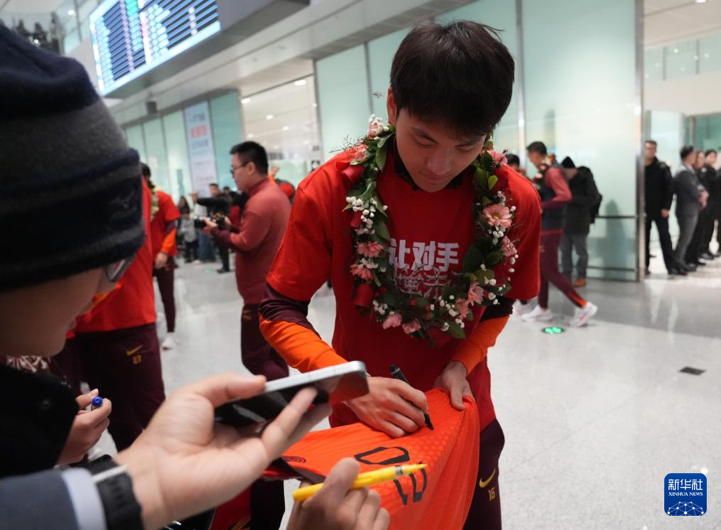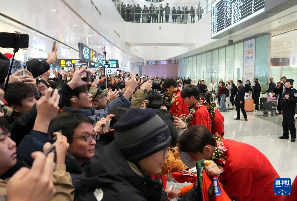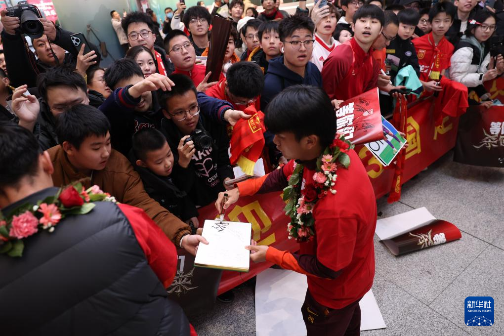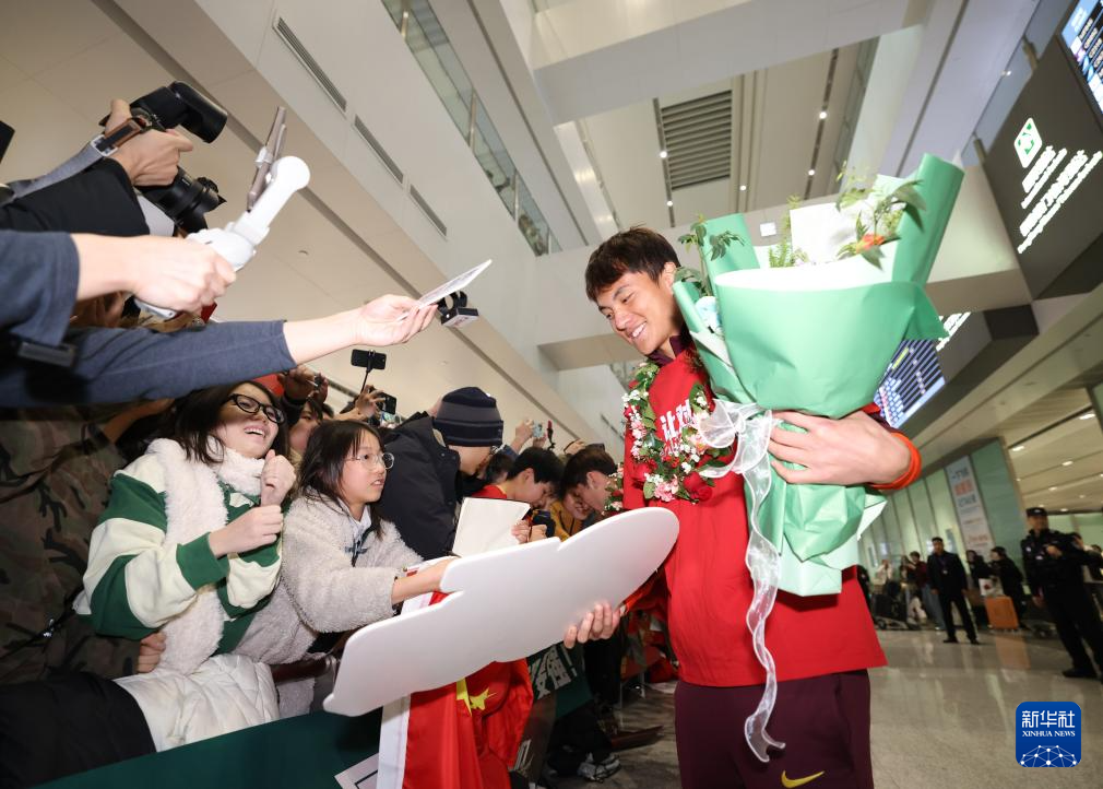 1月26日,球迷在机场欢迎中国队球员抵京。