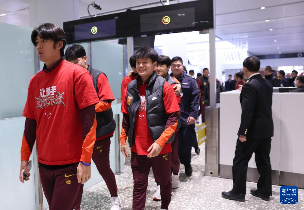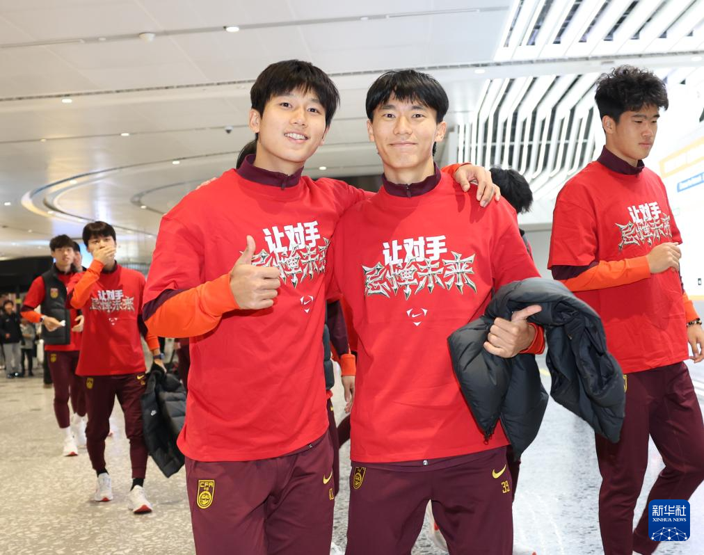 1月26日,U23男足球员抵达北京大兴国际机场。