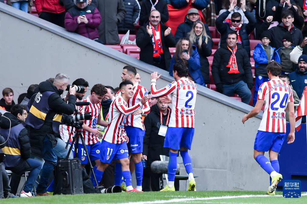 1月25日,马德里竞技队球员庆祝进球。