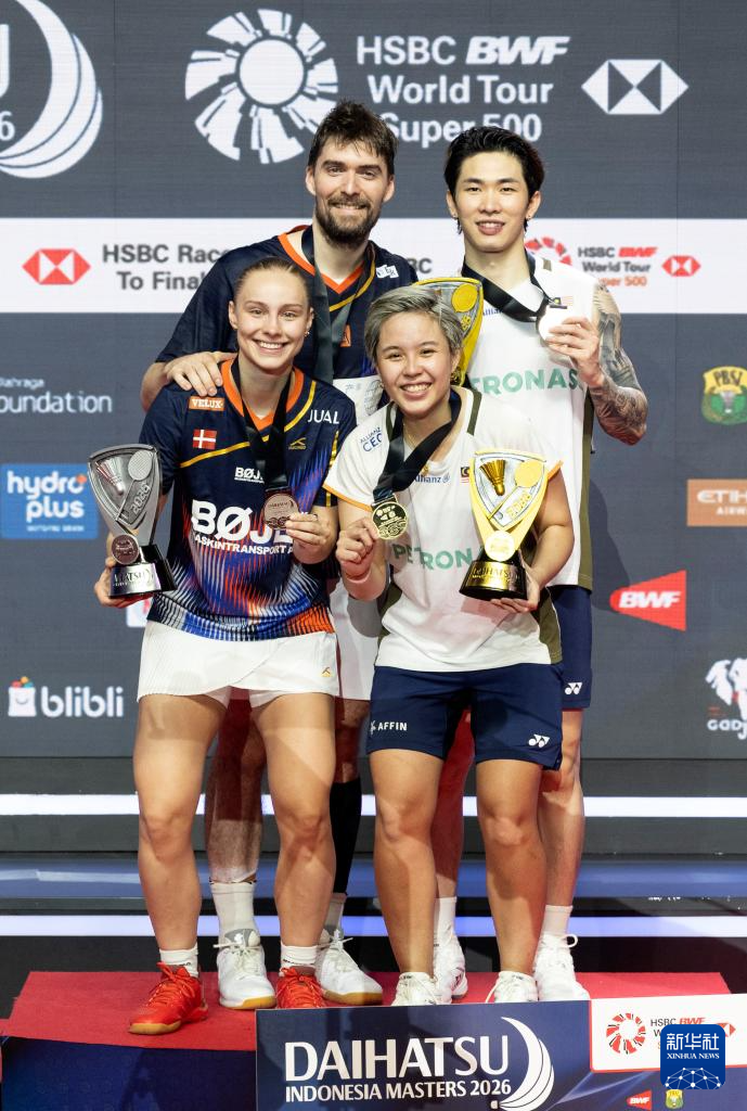 当地时间1月25日,在雅加达举行的印度尼西亚羽毛球大师赛混双决赛中,马来西亚组合陈堂杰/杜颐沩2比1战胜丹麦组合克里斯蒂安森/博尔,获得冠军。
