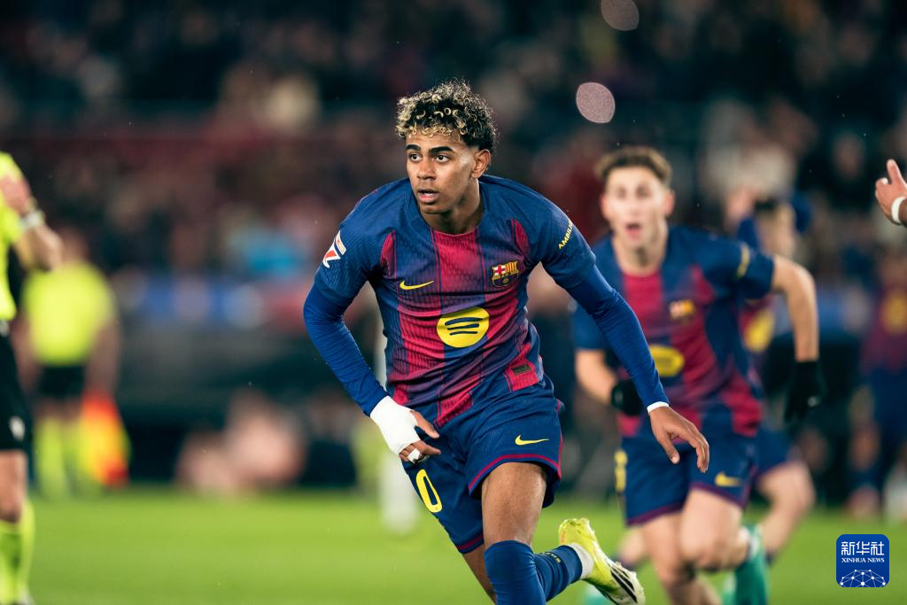 1月25日,巴塞罗那队球员亚马尔在比赛中。