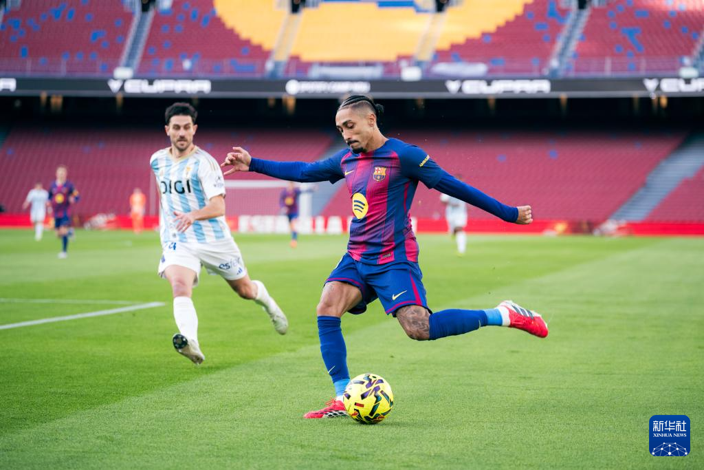 1月25日,巴塞罗那队球员拉菲尼亚(右)在比赛中。