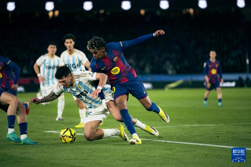 1月25日,巴塞罗那队球员亚马尔(右)在比赛中。