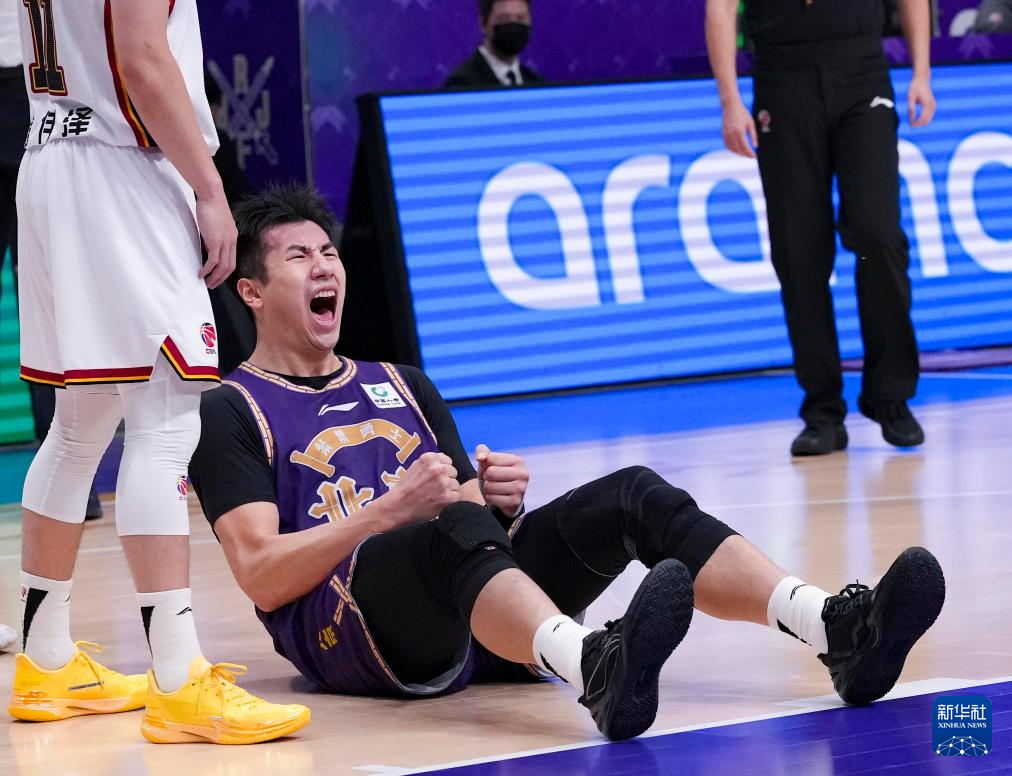 1月26日,北京控股队球员邹雨宸在比赛中庆祝得分。