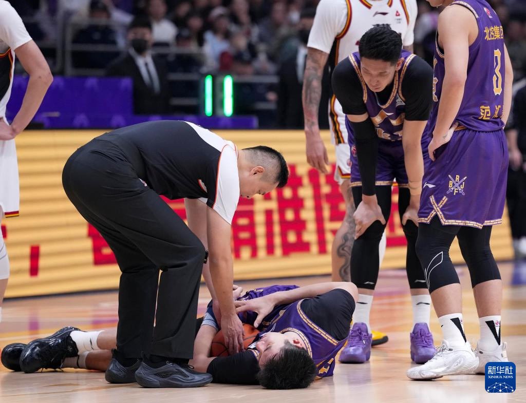 1月26日,北京控股队球员邹雨宸(下)在比赛中倒地。