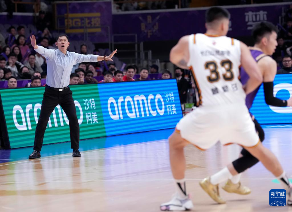 1月26日,北京控股队主教练张庆鹏在场边指挥。