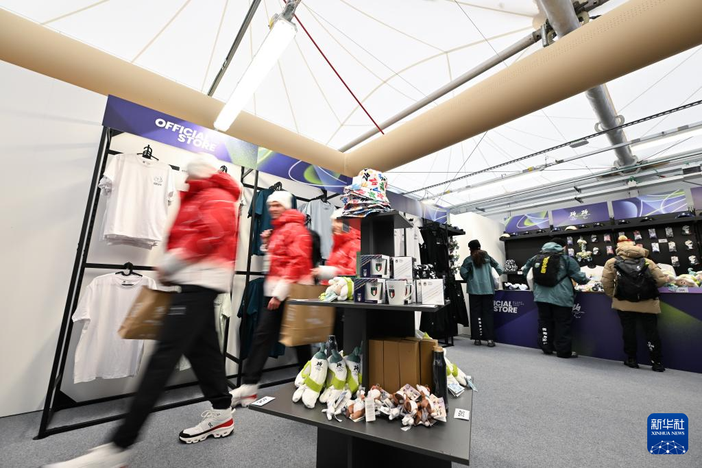 这是2月3日拍摄的科尔蒂纳丹佩佐奥运村内的纪念品商店。