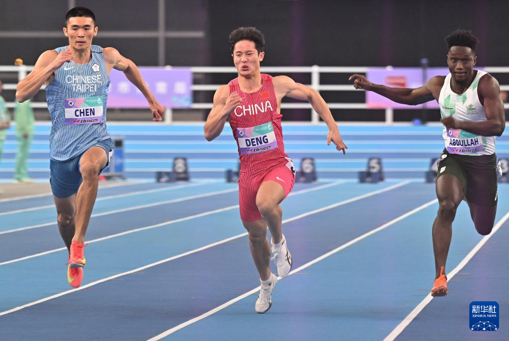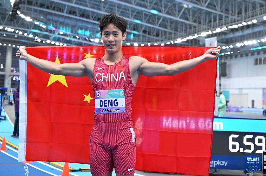 2月6日,在天津举行的第十二届亚洲室内田径锦标赛男子60米决赛中,中国选手邓信锐以6秒59的成绩获得冠军。