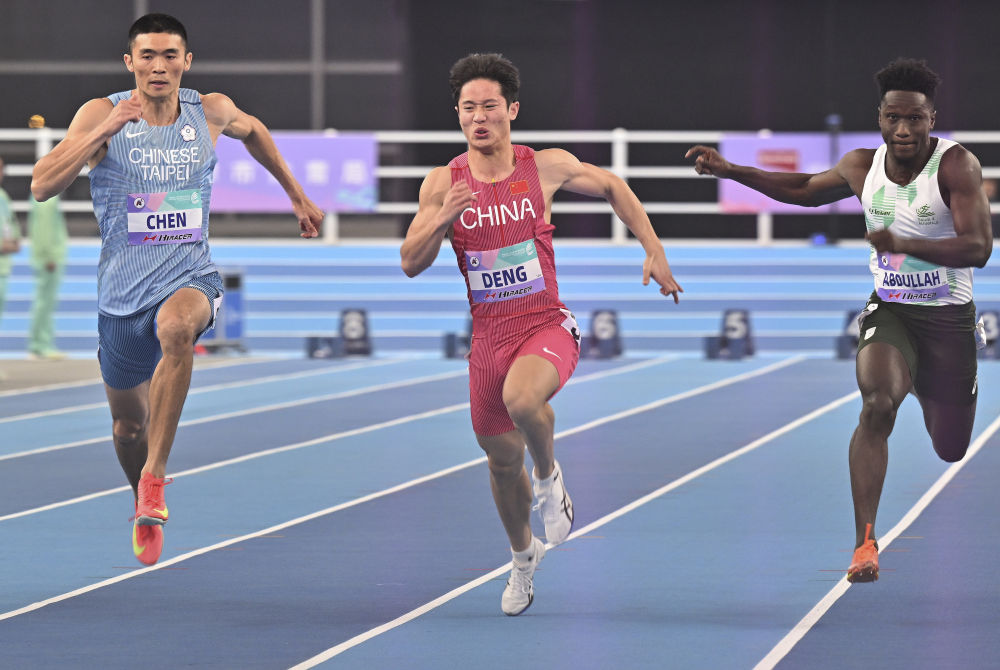 男子60米决赛是当晚的重头戏。中国队选手邓信锐在最后时刻全力加速,领先中国台北选手陈玟溥0.01秒冲线,惊险夺冠。一度领跑的沙特阿拉伯选手达乌德在最后冲刺阶段意外摔倒,仍收获季军。夺冠热门、日本名将桐生祥秀发挥不佳,无缘领奖台。