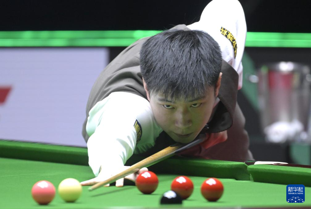 2月7日,中国选手赵心童在比赛中。