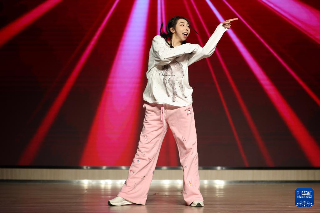 2月11日,国家体操队队员张怡涵在联欢会上表演舞蹈。