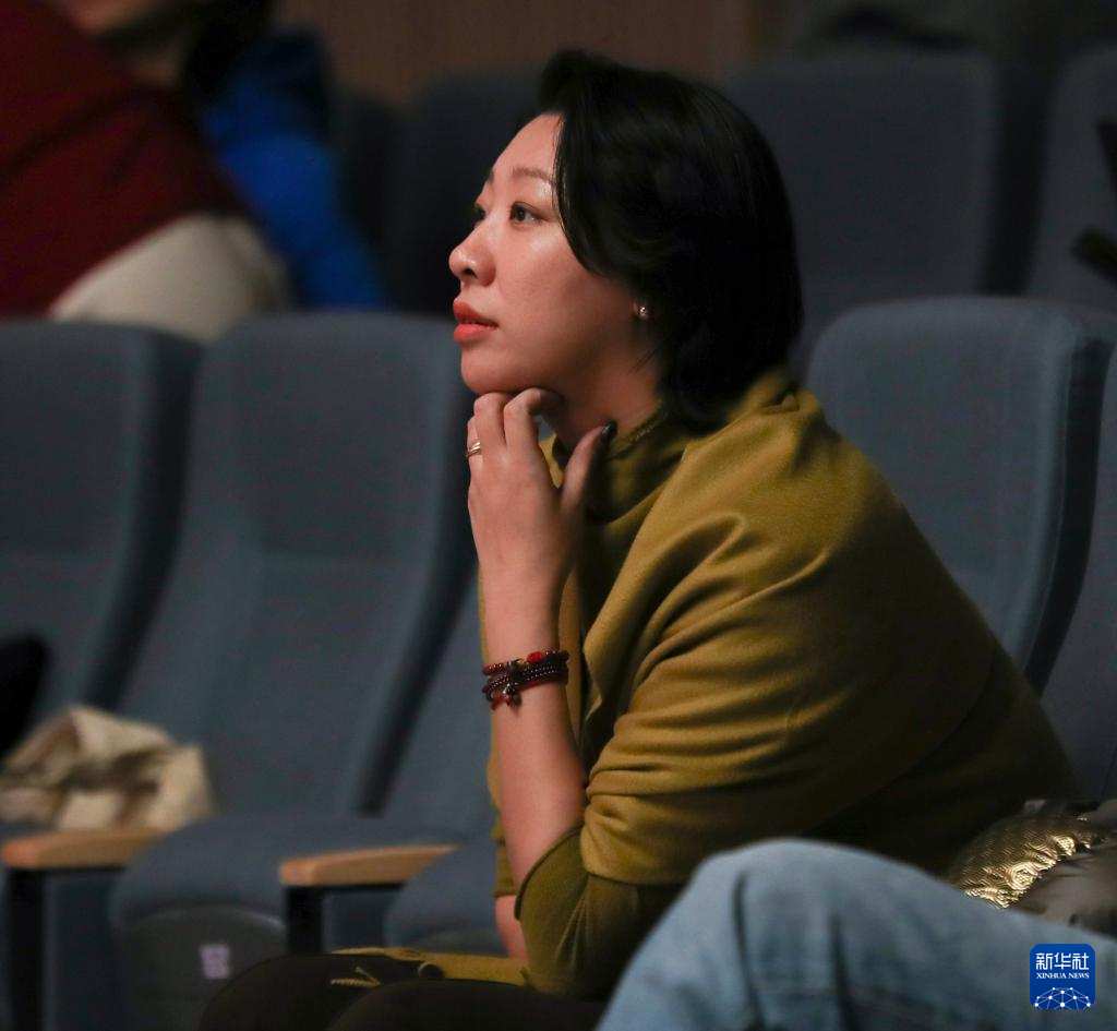 2月11日,国家艺术体操队教练孙丹在台下观看队员演出。