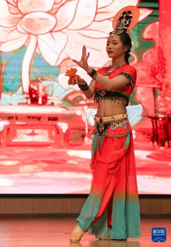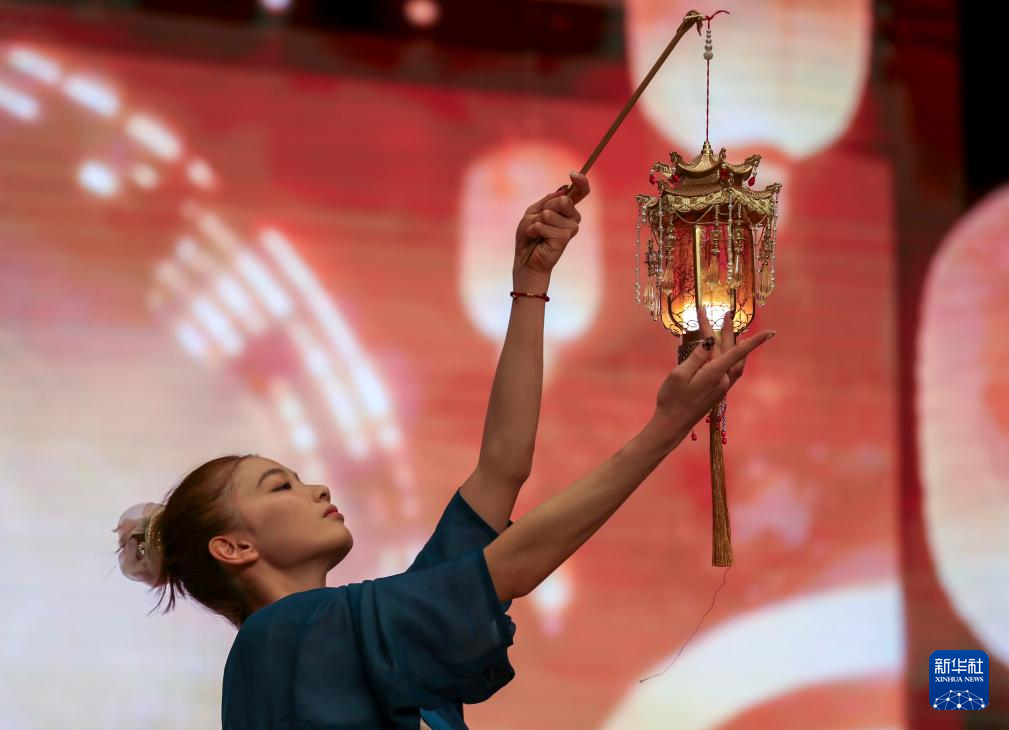 2月11日,国家艺术体操队队员王淇在联欢会上表演舞蹈。