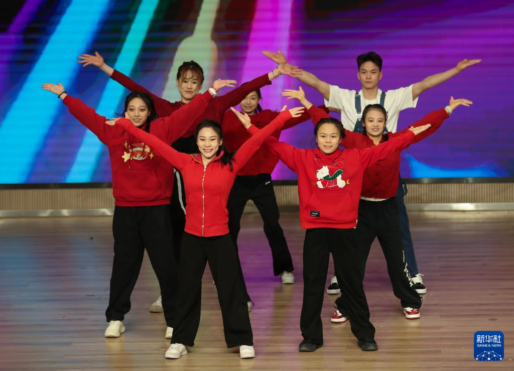 2月11日,国家体操队队员在联欢会上表演舞蹈。