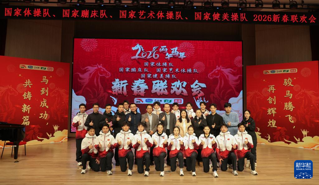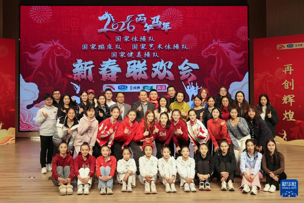 2月11日,国家体操队、国家蹦床队、国家艺术体操队、国家健美操队在北京汇文中学联合举办2026新春联欢会。