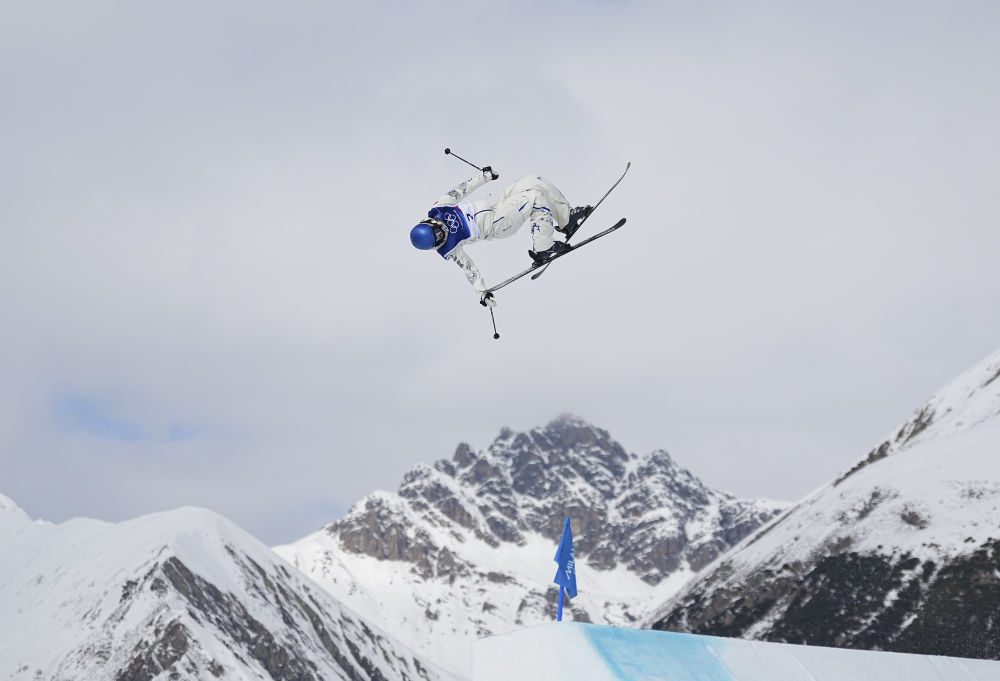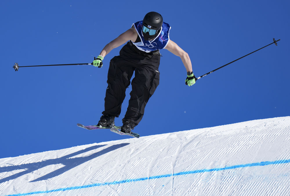 2月7日,芬兰队选手库拉·科伊维斯托在自由式滑雪男子坡面障碍技巧资格赛中。新华社记者 夏一方 摄
