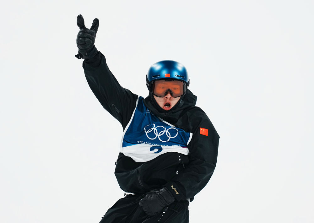 2月7日,苏翊鸣在单板滑雪项目男子大跳台决赛中。新华社记者 胡超 摄