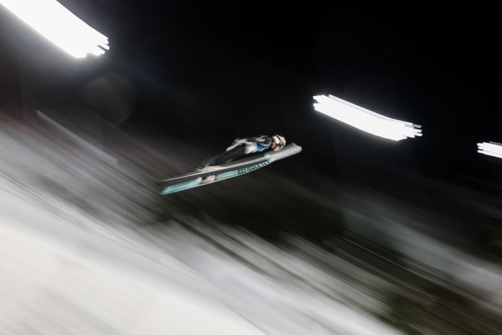 2月7日,斯洛文尼亚选手科瓦契奇在跳台滑雪项目女子个人标准台比赛中。新华社记者 黄伟 摄