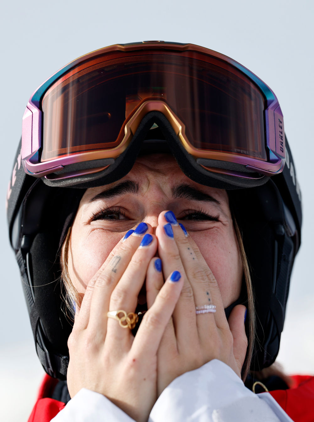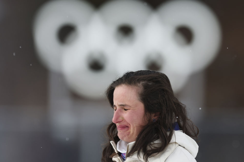 2月11日,法国选手珀赖因·拉丰在自由式滑雪女子雪上技巧决赛后。新华社记者 王鹏 摄