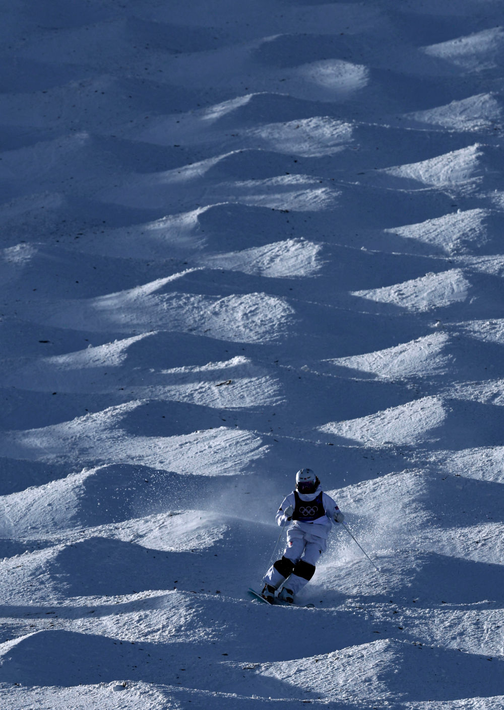 2月11日,美国选手杰琳·考夫在自由式滑雪女子雪上技巧决赛中。新华社记者 王鹏 摄