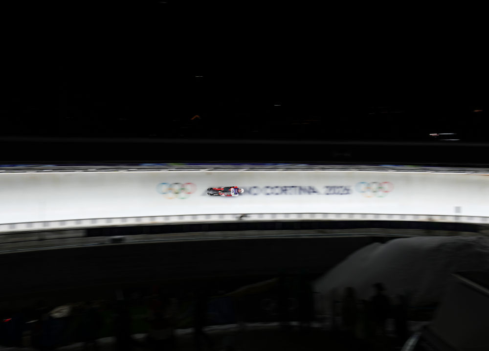 2月7日,罗马尼亚选手克勒琼在男子单人雪橇第一轮比赛中。新华社记者 李钢 摄