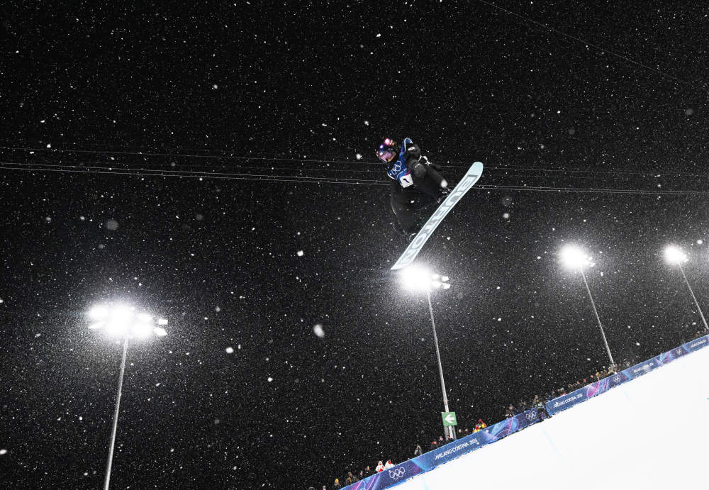 2月12日,韩国选手崔佳温在米兰冬奥会单板滑雪女子U型场地技巧决赛中。新华社记者 夏一方 摄