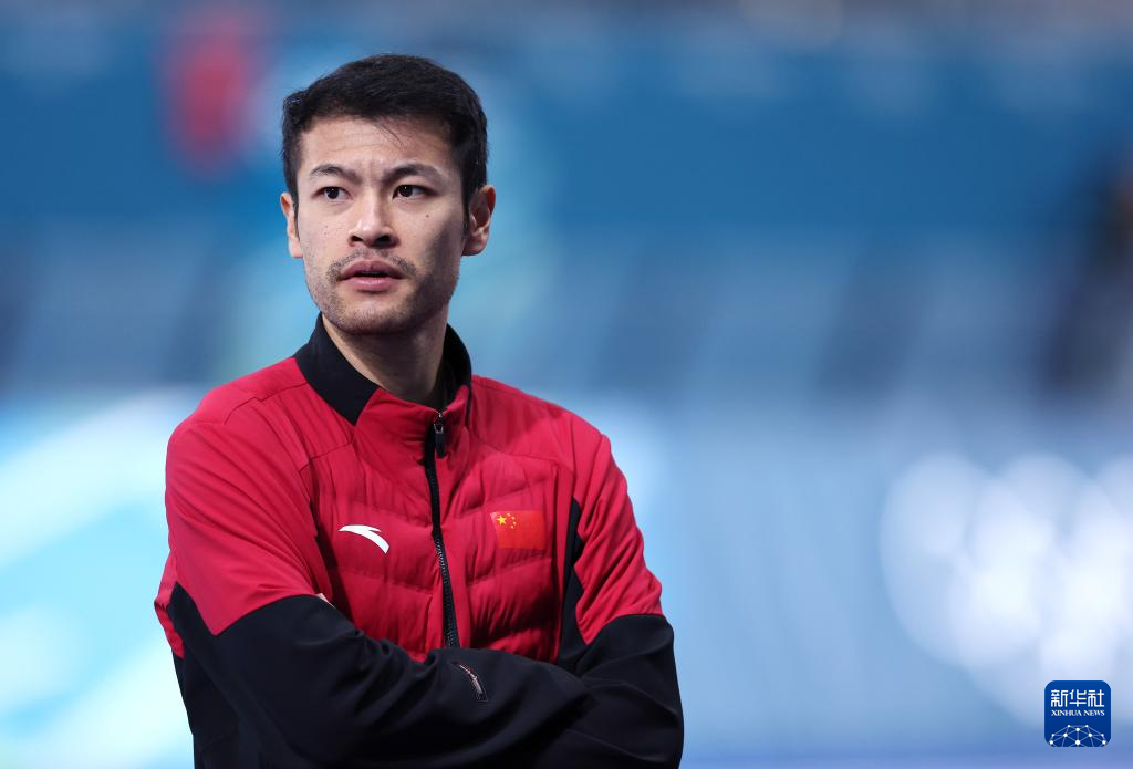 2月15日,中国队选手宁忠岩在场边观赛。