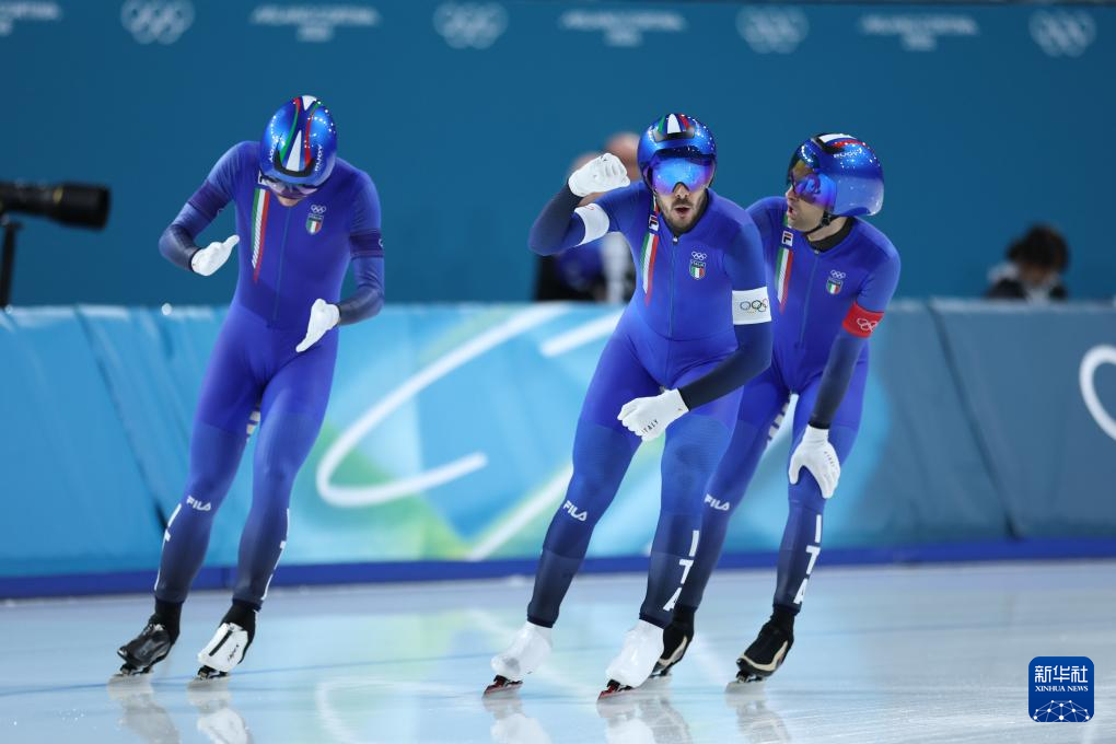 当地时间2月15日,米兰-科尔蒂纳冬奥会速度滑冰男子团体追逐四分之一决赛在意大利米兰举行。中国队晋级半决赛。