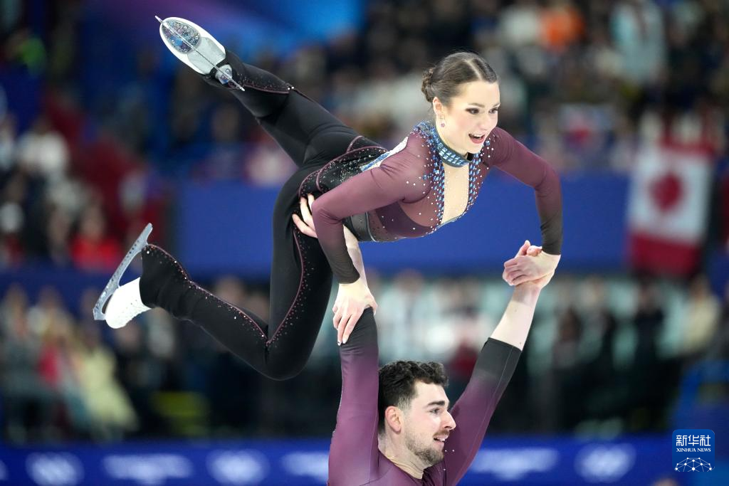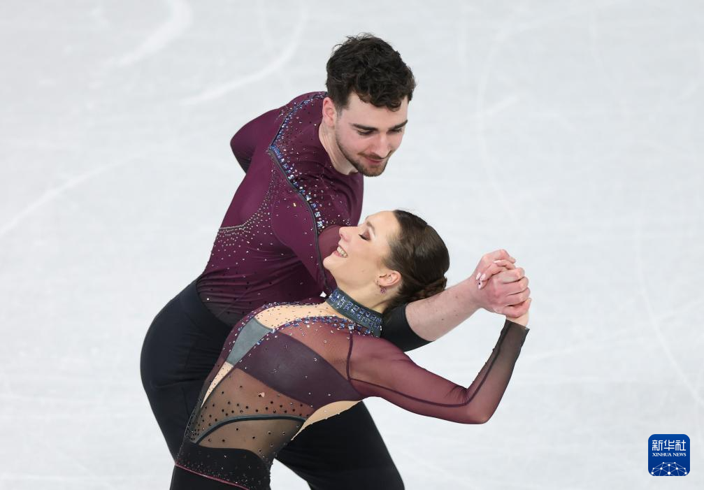 2月16日,加拿大组合斯特拉托-杜德克/德尚(右)在比赛中。
