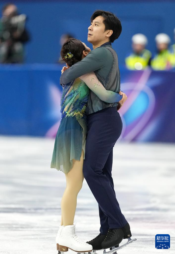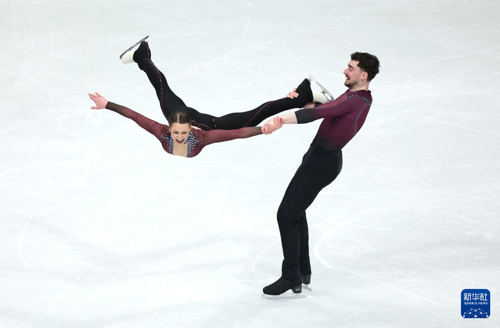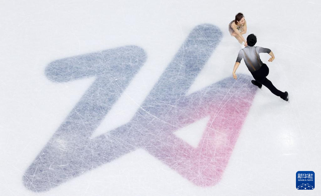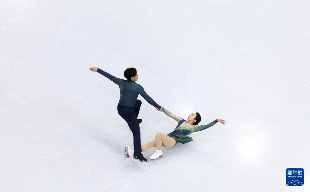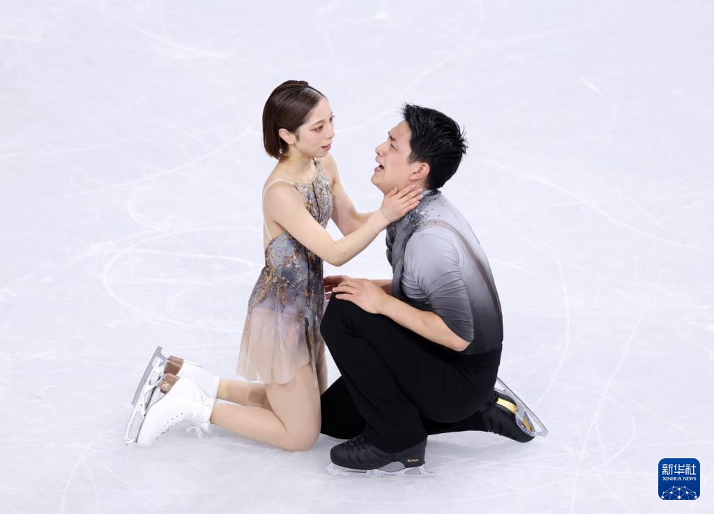 2月16日,日本组合三浦璃来(左)/木原龙一在比赛中。他们获得双人滑项目冠军。