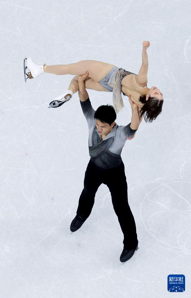 2月16日,德国组合哈泽(上)/沃洛丁在双人滑自由滑比赛中。最终他们获得双人滑项目季军。