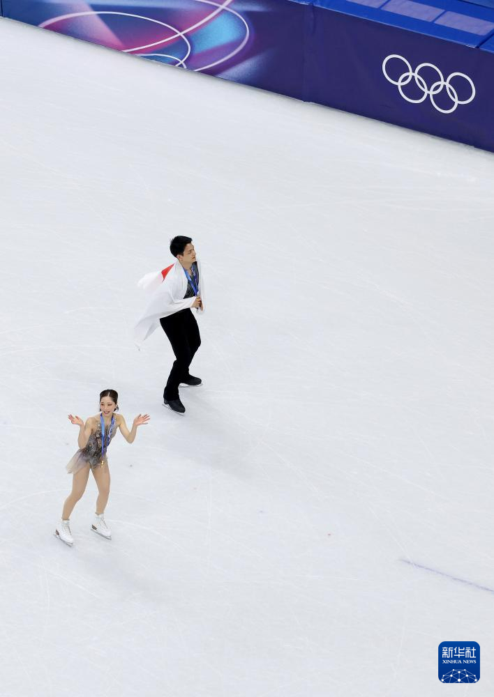 2月16日,日本组合三浦璃来/木原龙一(右)在双人滑自由滑比赛中。最终他们获得双人滑项目冠军。