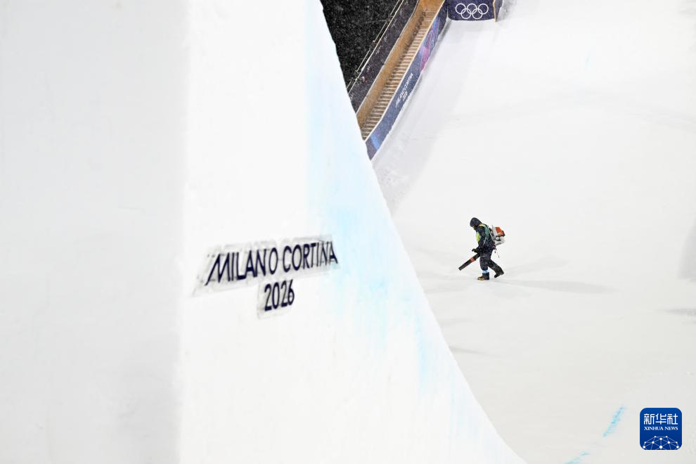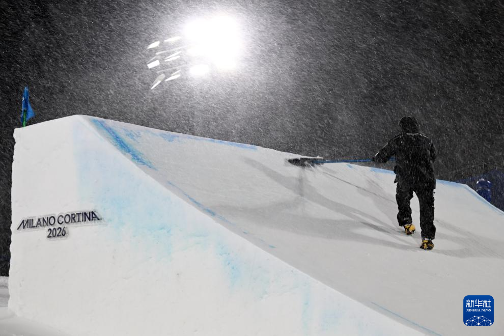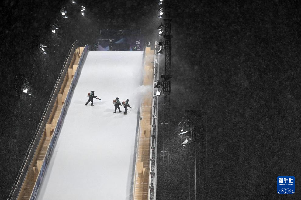 2月16日,赛场工作人员在检测是否具备开赛条件并完成赛前准备工作。