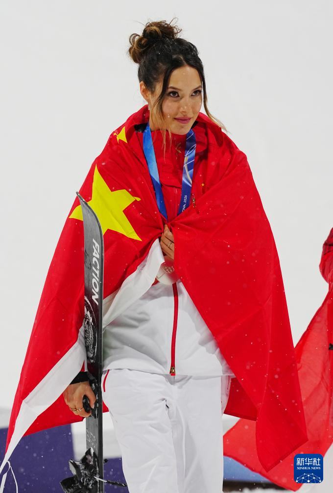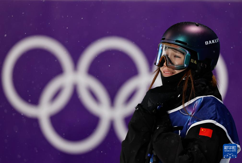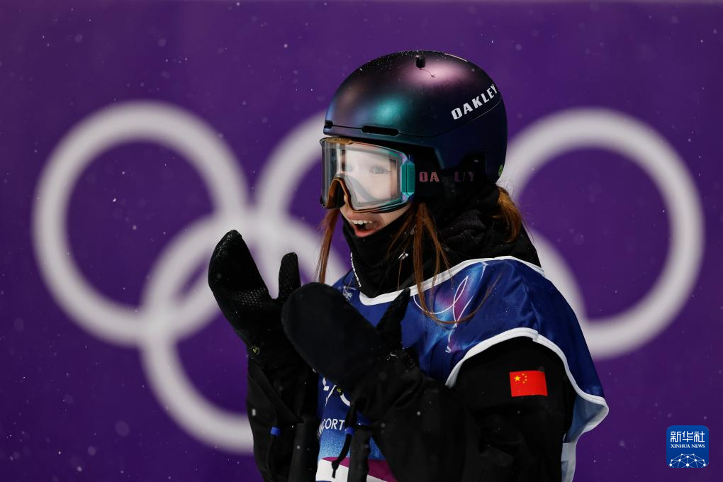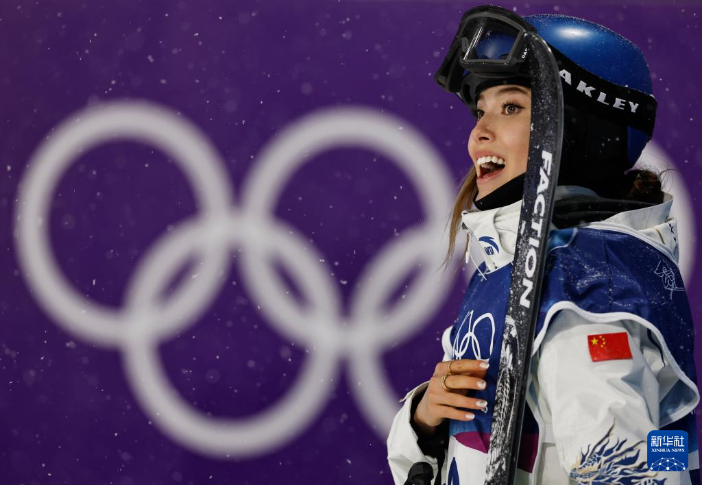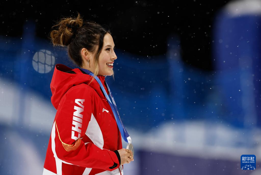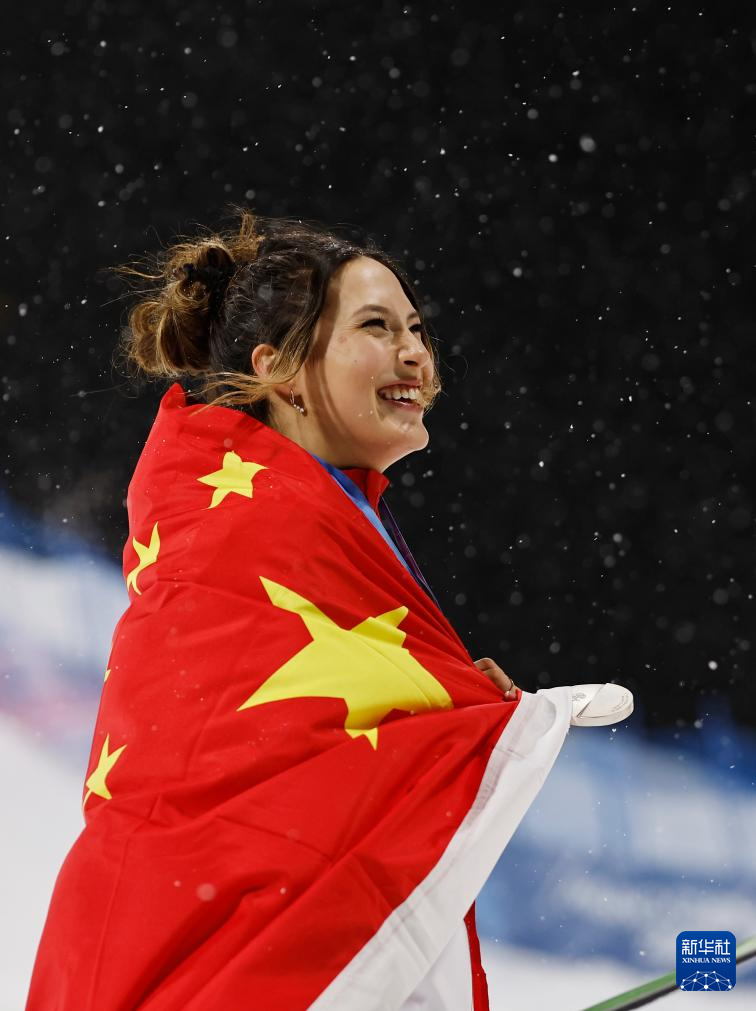 2月16日,中国选手谷爱凌在第三跳后。她获得亚军。