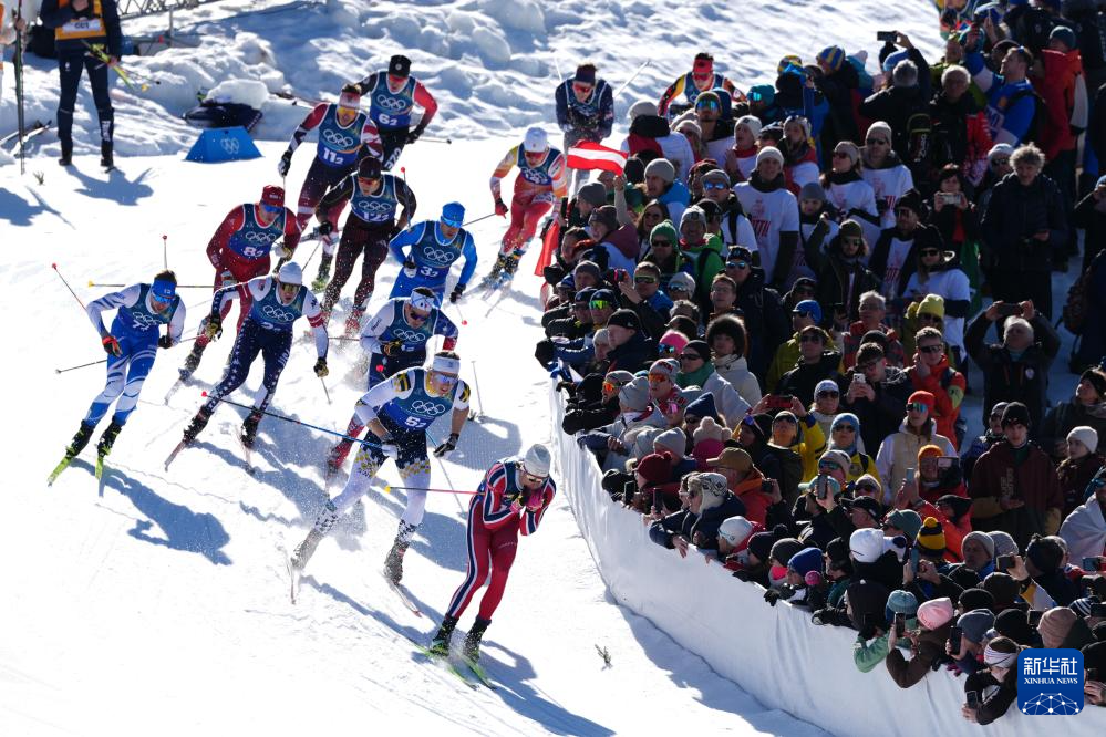 2月18日,挪威队选手克莱博(右一)在比赛中。
