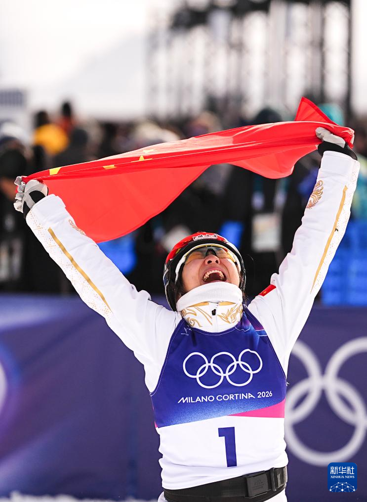 2月18日,中国选手徐梦桃庆祝夺冠。