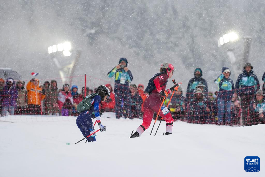 2月19日,中国选手次旦玉珍(右)在比赛中。她获得第13名。