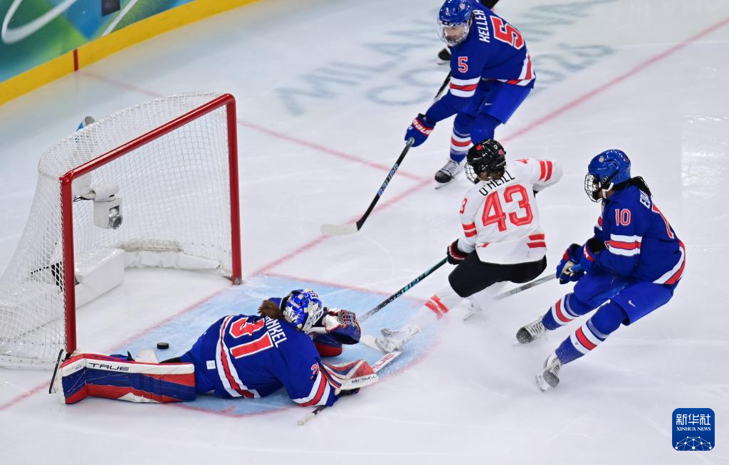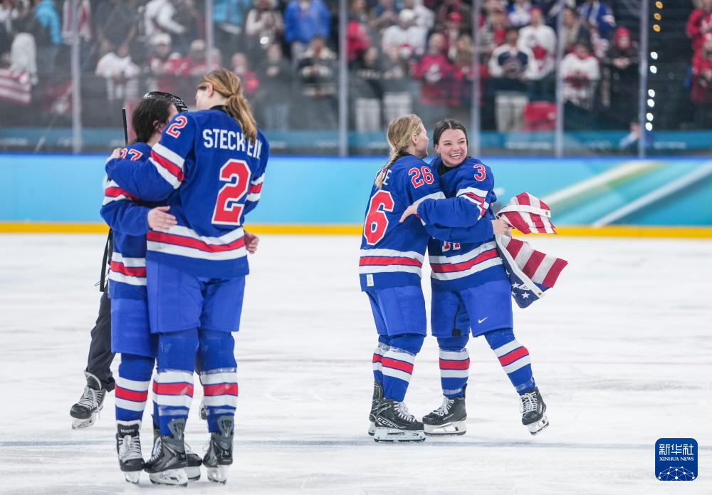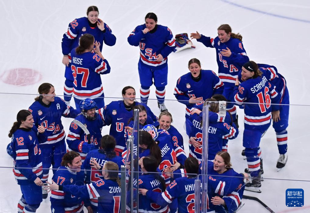当地时间2月19日,米兰-科尔蒂纳冬奥会冰球项目女子金牌赛在意大利米兰举行,美国队2比1战胜加拿大队,夺得冠军。