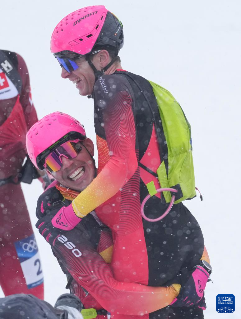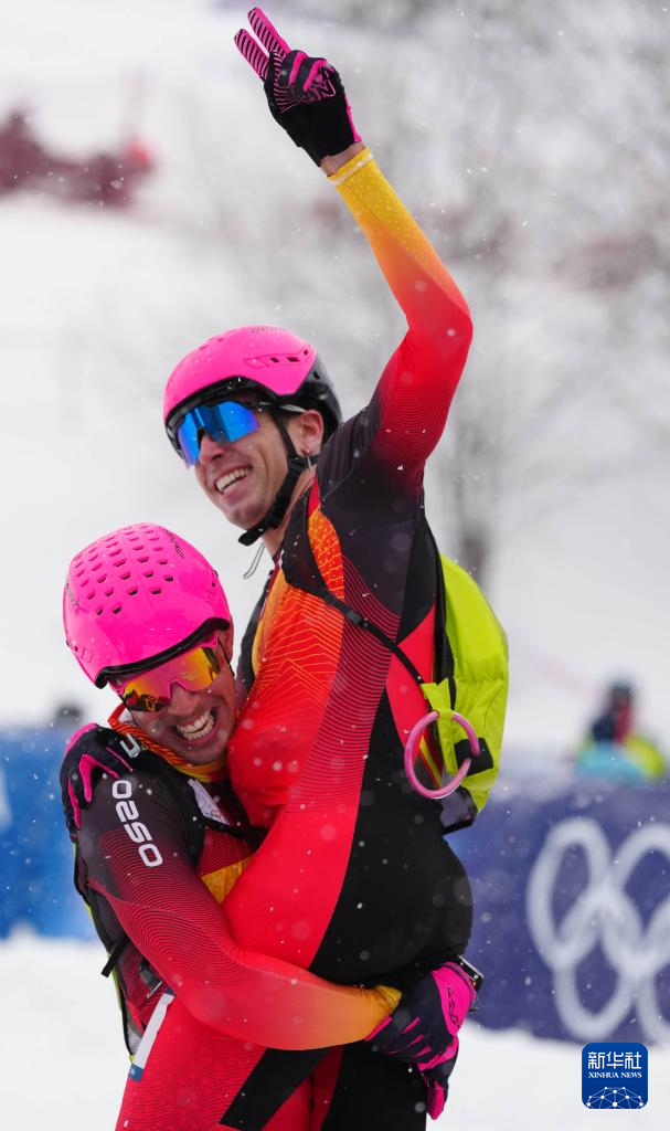 2月19日,西班牙选手卡多纳·科利(右)在比赛后与队友庆祝。他获得冠军。