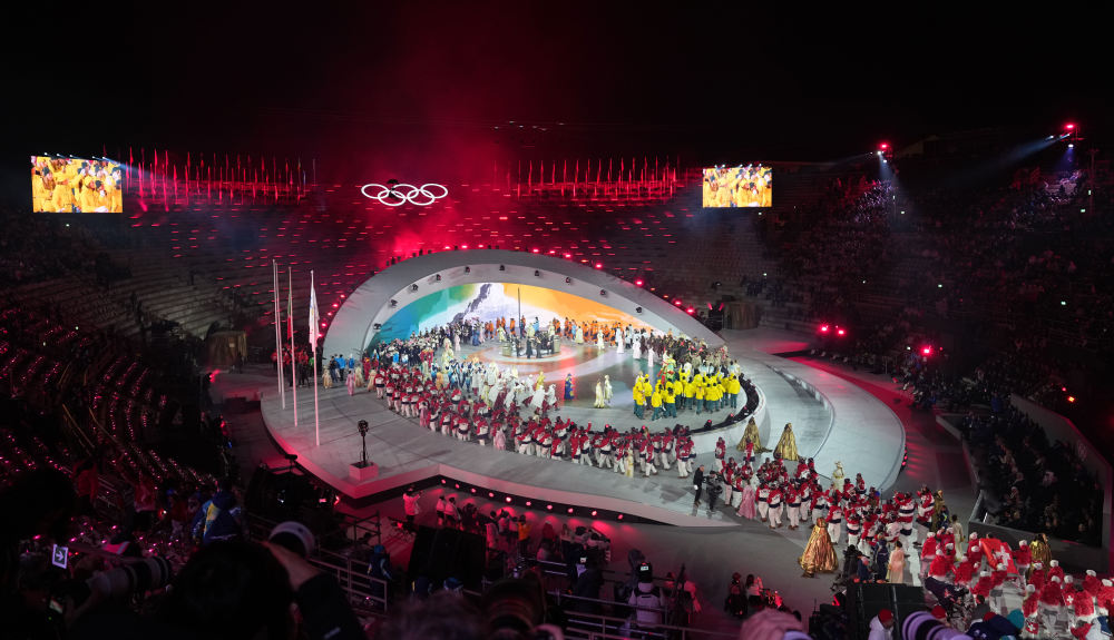 当地时间2月22日,米兰-科尔蒂纳冬奥会闭幕式在意大利维罗纳奥林匹克竞技场举行。
