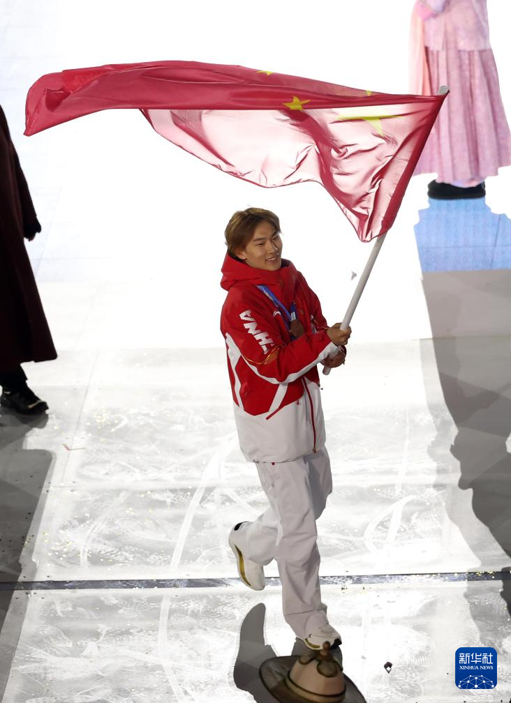 2月22日,中国体育代表团旗手苏翊鸣在闭幕式上入场。