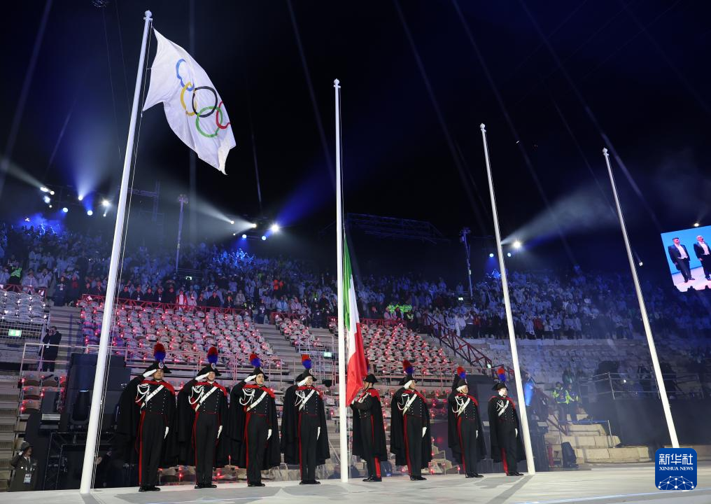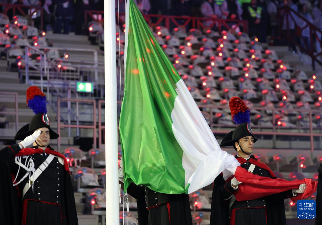 2月22日,意大利国旗在闭幕式上升起。